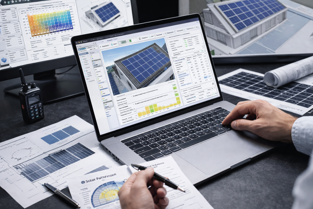 Professional solar layouts and PV performance reports using tools like PVsyst, Solar Pathfinder, AutoCAD, and SketchUp.